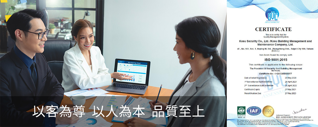 秉持 ISO 9001 標準精神,加強對服務、技術與品質保證的提昇,在公司穩定成長的同時,期許在各領域裡為客戶做出最完善及最高品質的服務。