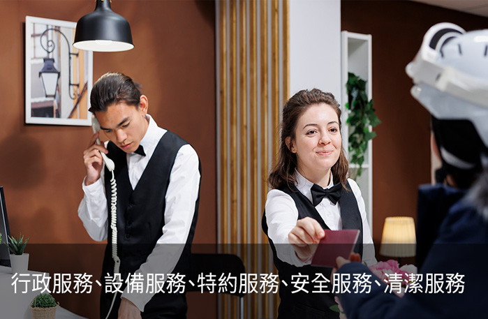 一、協助現場主管處理大樓全般事務 二、依規定格式製作財務報表及收支相關事宜 三、訪客進入公共區域之接待 四、處理各項臨時叢生事項 五、包裹及信件收發 六、叫車服務、一般性生活服務及代辦 七、各項行政及設備資料彙整 八、配合業主臨時交辦事項